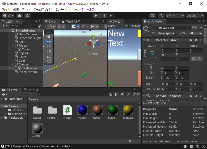 - ヒエラルキーの「Canvas>TextCopper」をクリック
